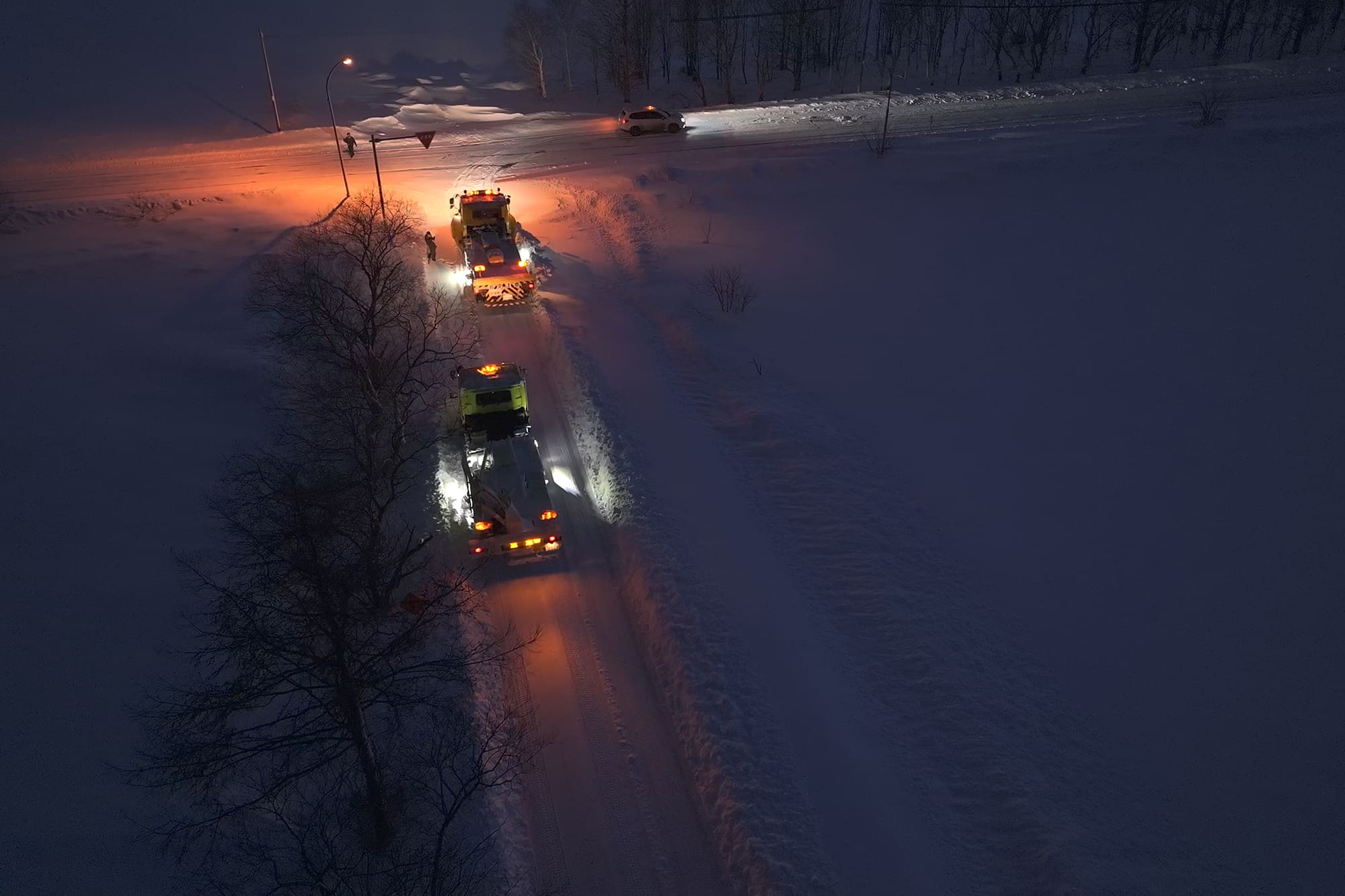 上田組は国道・道道から町道や私道まで維持・除雪工事を担当しています。道路の維持管理は北海道の流通を棄損させない重要な使命であり、除雪業務は緊急車両の通行を円滑にする、言わば人命救助にも寄与する任務であると心得ています。